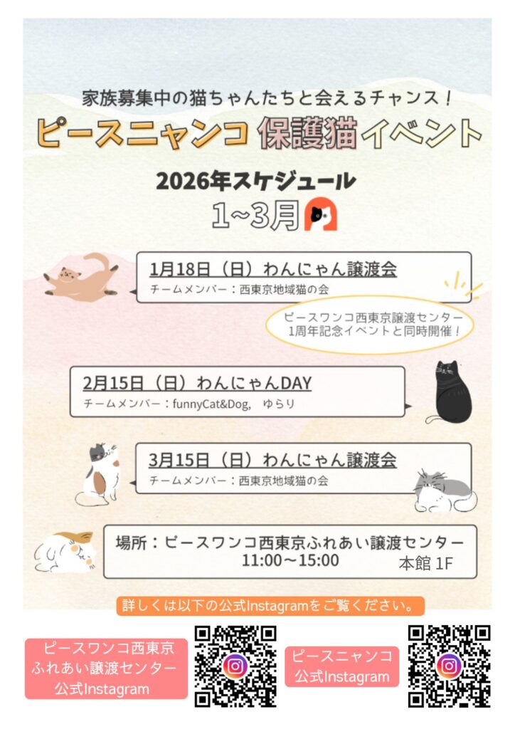 1~3月 ピースニャンコ 保護猫イベント