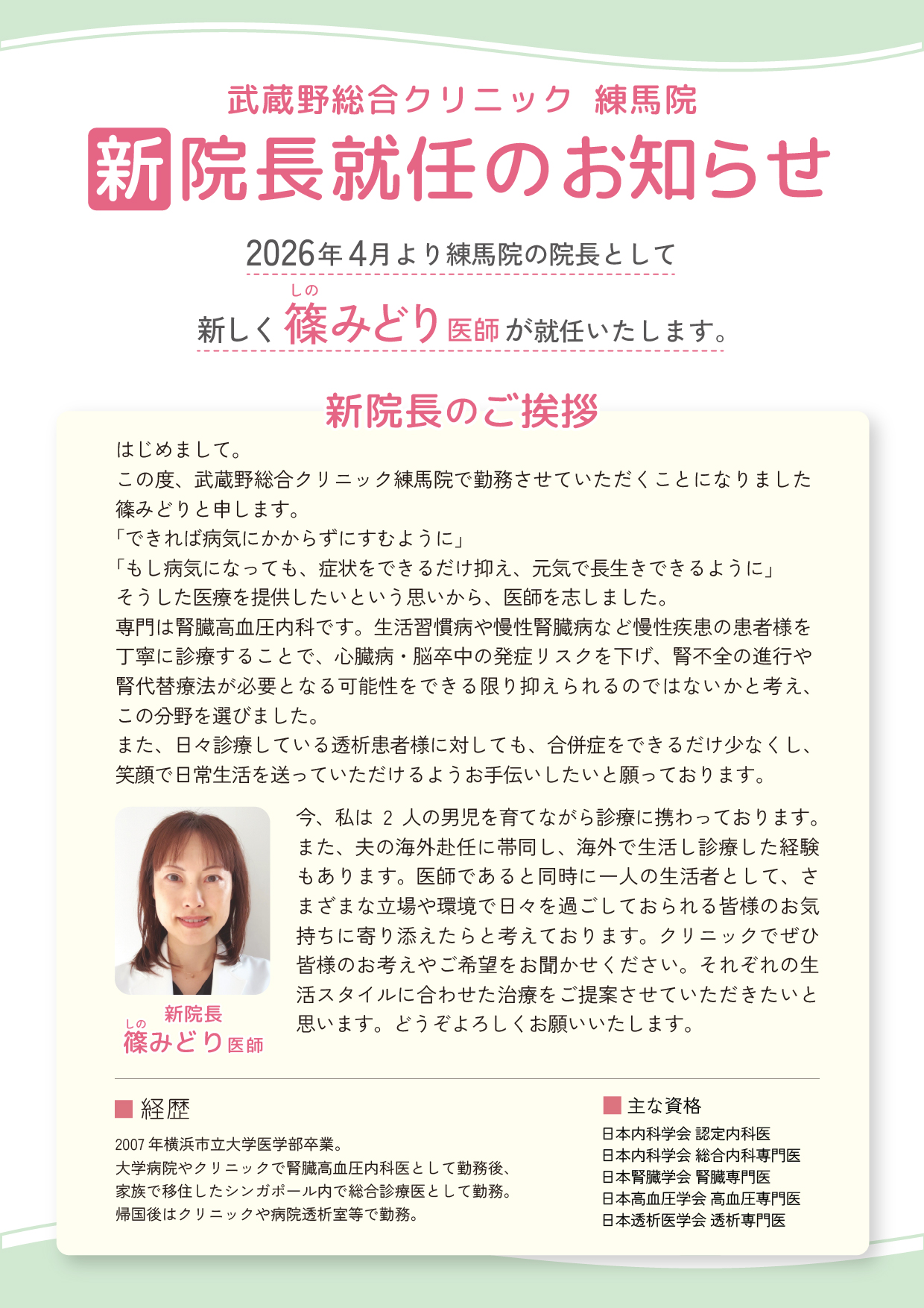 2026年4月から新院長が就任!